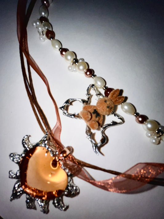 Double Layer Peach Rabbit Necklace
