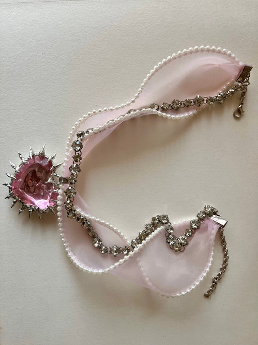 Chunky Pink Heart Ribbon Necklace